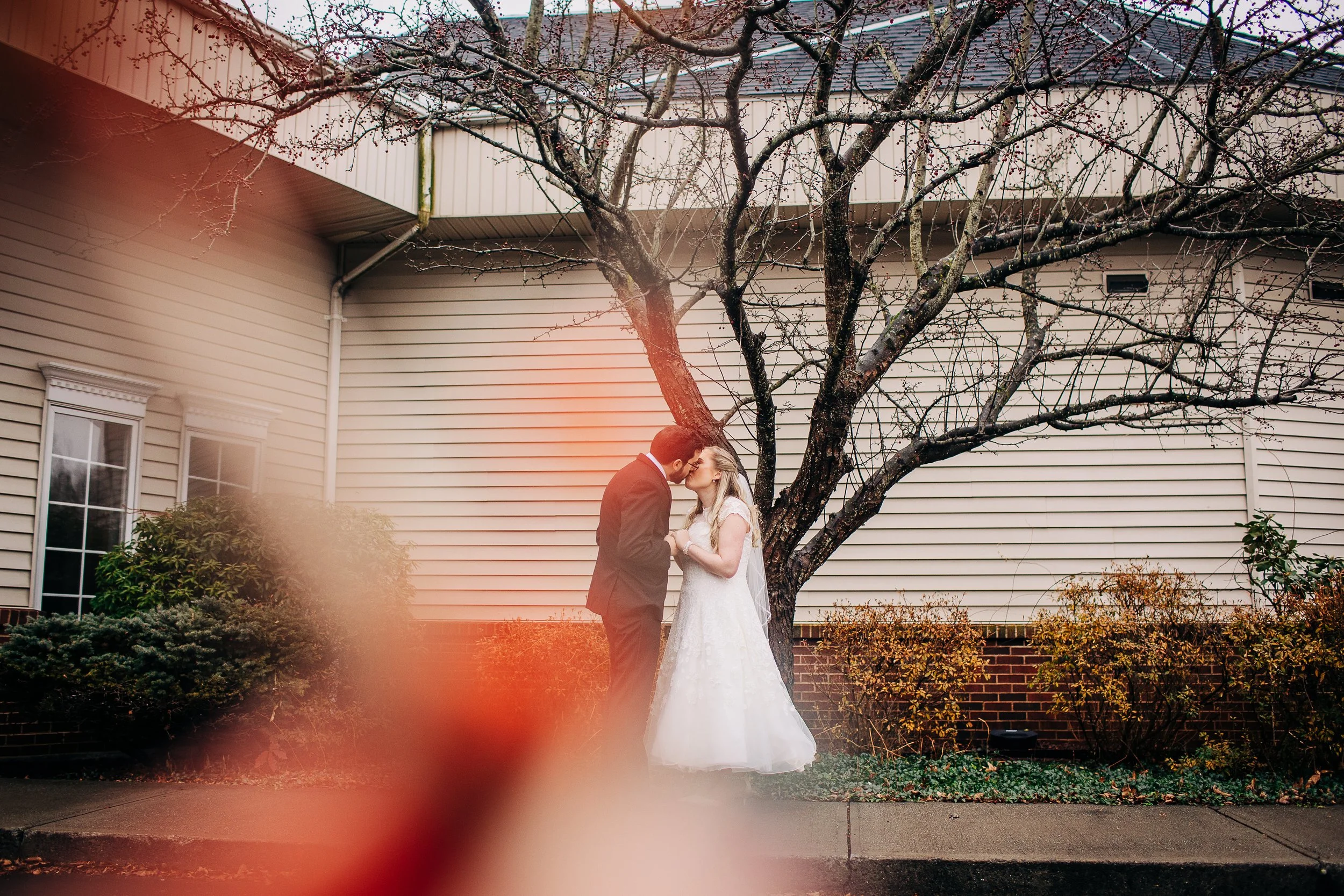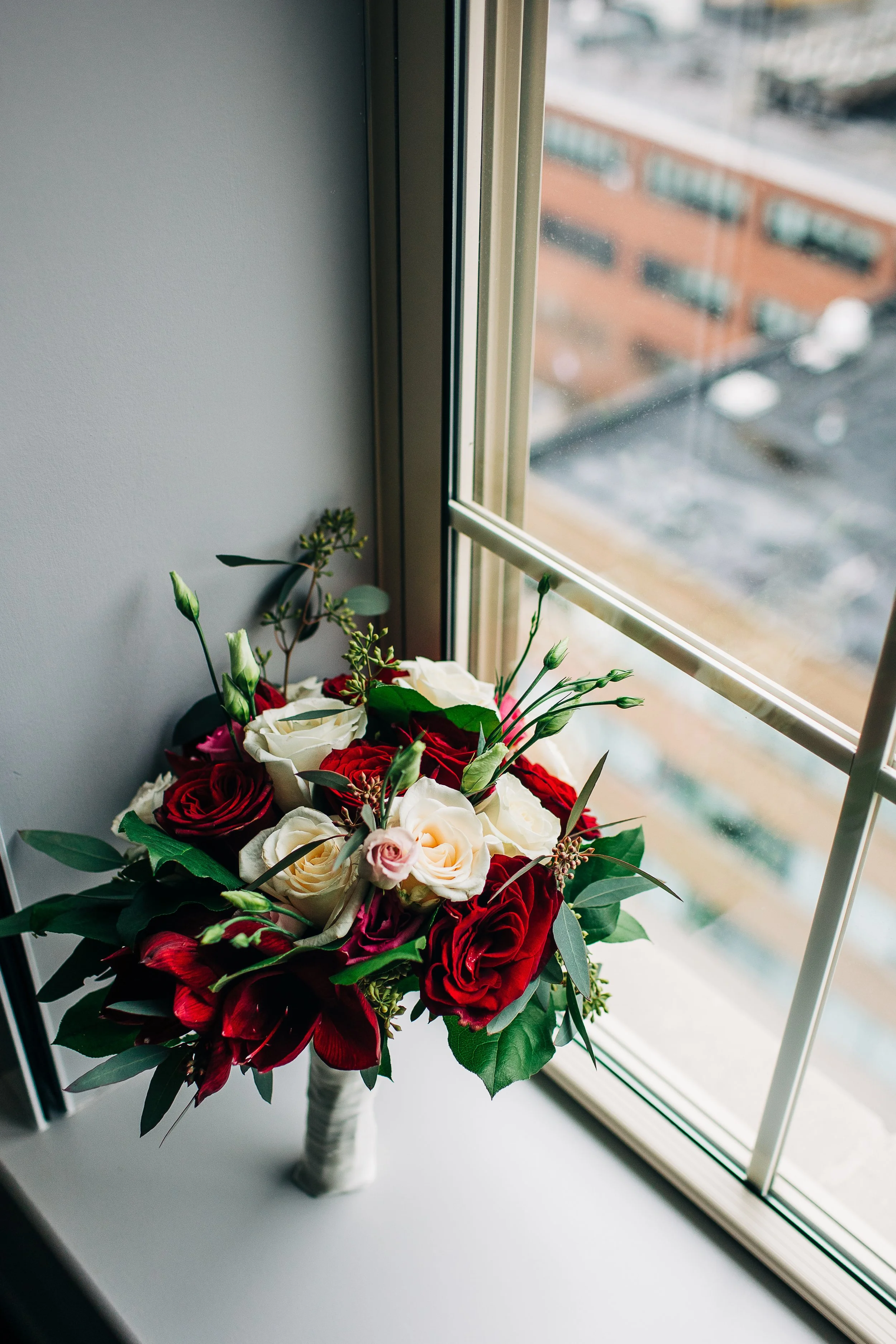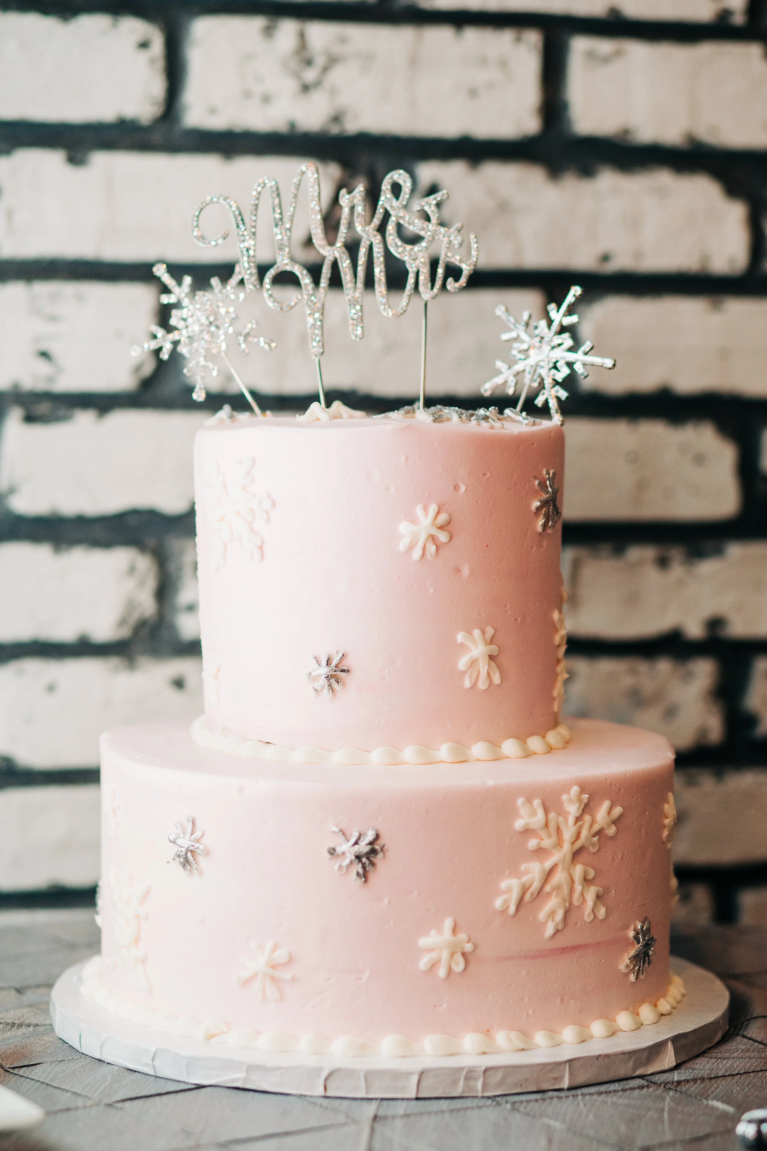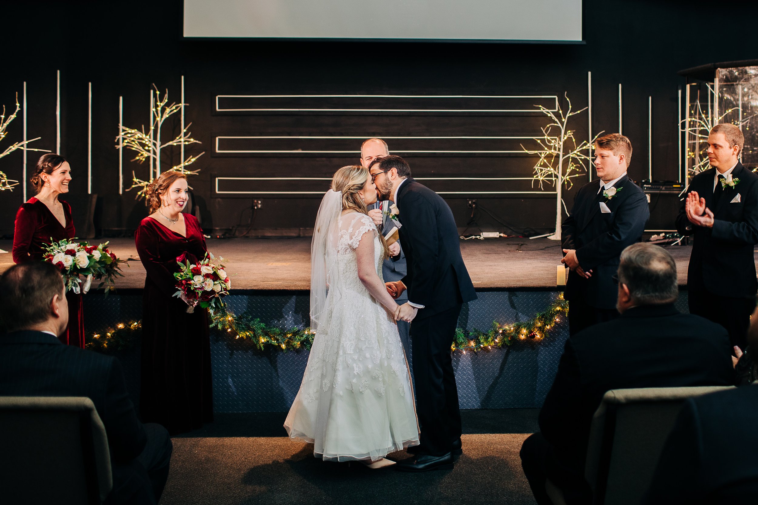 Bre and Luke opted for a wintery theme, with a few nods to the Christmas season. Their ceremony space was already decorated for Christmas, so they ran with it. They had beautiful red, white, and blush pink florals, and a snowflake motif for their reception decor. Bre also wore a tea-length wedding gown accompanied by a fur stole to keep her warm - a wardrobe choice that was so cute and unique (and which also proved efficient, as we didn’t need to worry about dragging a wedding gown train on the wet ground that day!).