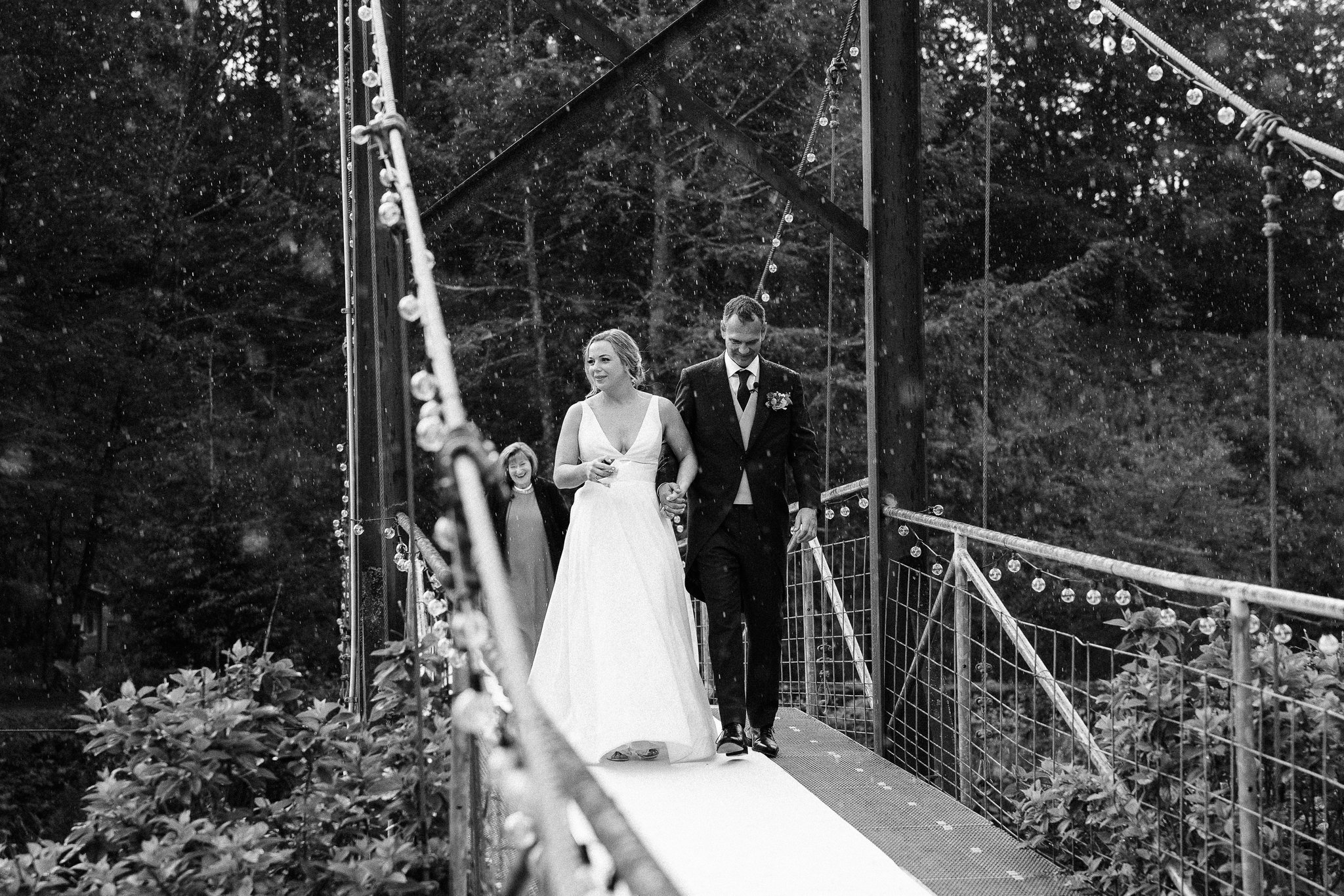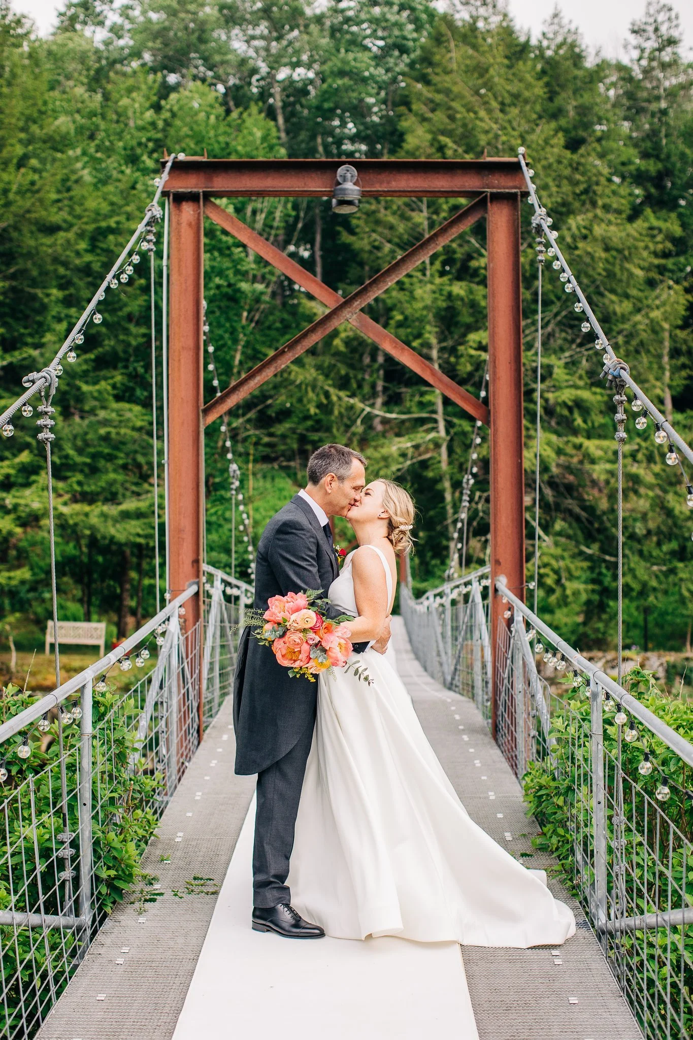 Antrim Streamside is a beautiful and versatile location. It can host weddings, but also rents out cabins for weekend travelers, and can host corporate events, as well. It is a stunning and quiet location, set in the woods, with the stream as its centerpiece. Taylor and Matt chose to host their ceremony on the bridge across the stream - such a unique and beautiful choice.