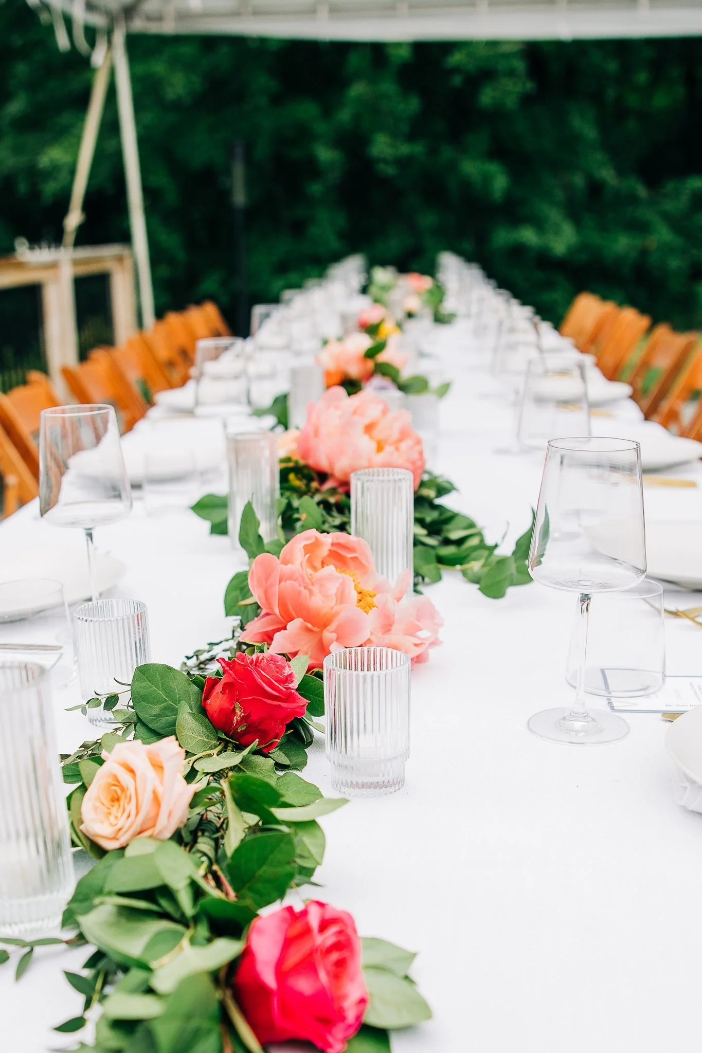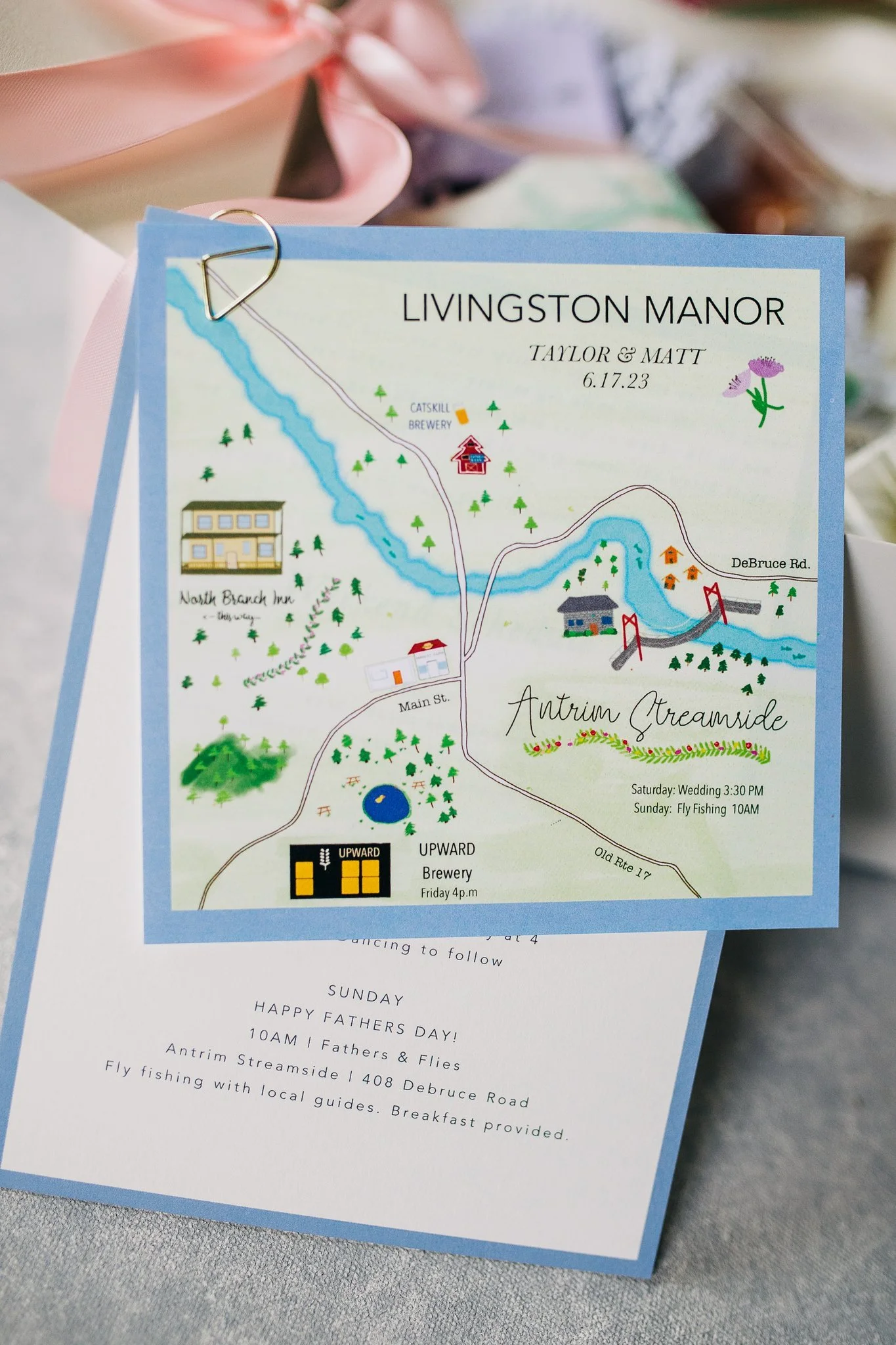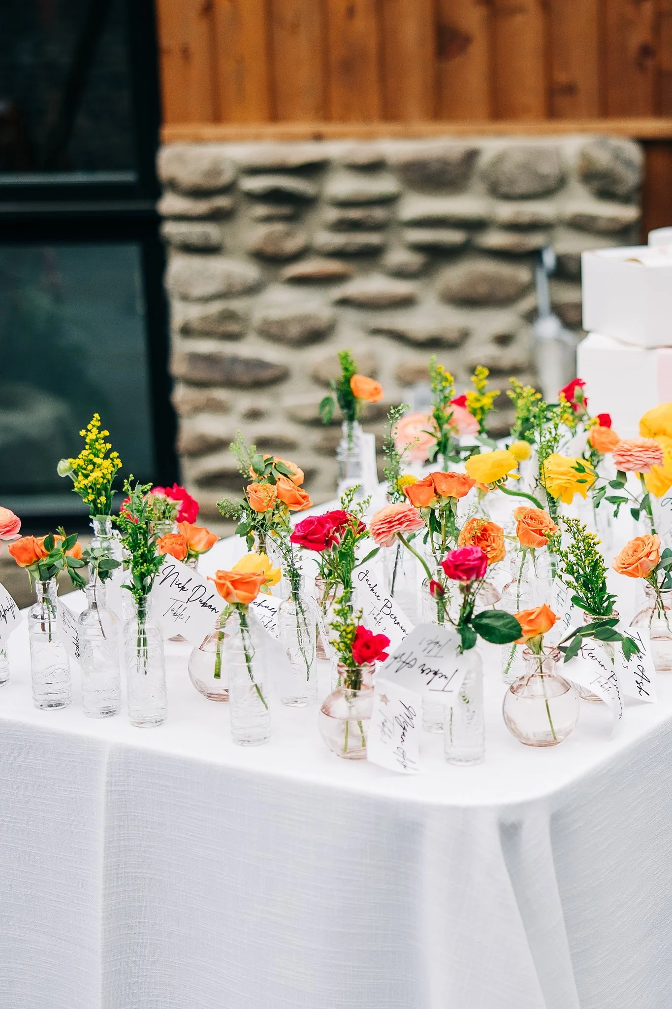 Taylor and Matt chose a summery aesthetic for their June wedding, focusing on colorful florals and greenery. Their celebration lasted the entire weekend, so they also had welcome gifts for guests as they arrived, including a map of the local area and some treats. They didn’t have to do much to dress up the space, since this venue is already so gorgeous, but what they did add just enhanced how lovely the location already was.