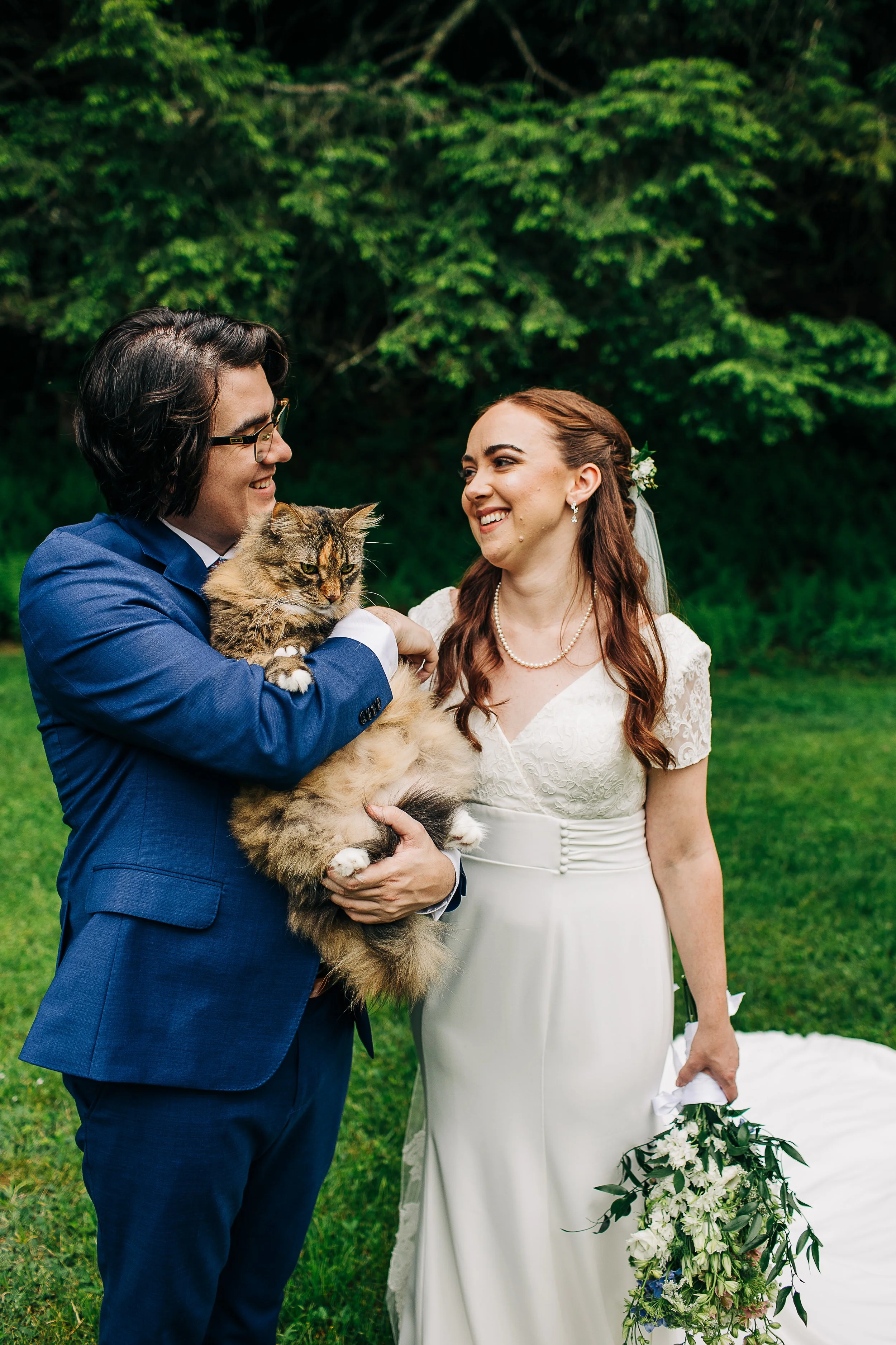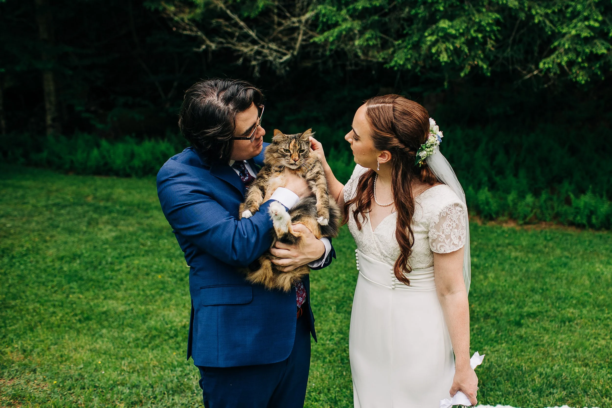 There were so many special and detailed moments that I just could not get over on Lauren and Scott’s wedding day - chief of which was including their cat Zephyr in their wedding photos! (Note to fellow cat lovers: Bring your cat to your wedding, please and thank you.) I was also completely in love with how adoring Lauren’s mom was; how beautiful Lauren’s custom Anomalie gown was; the “parade” from the ceremony space to the reception; the rocks that people gave to them during their ceremony as everyone wept.