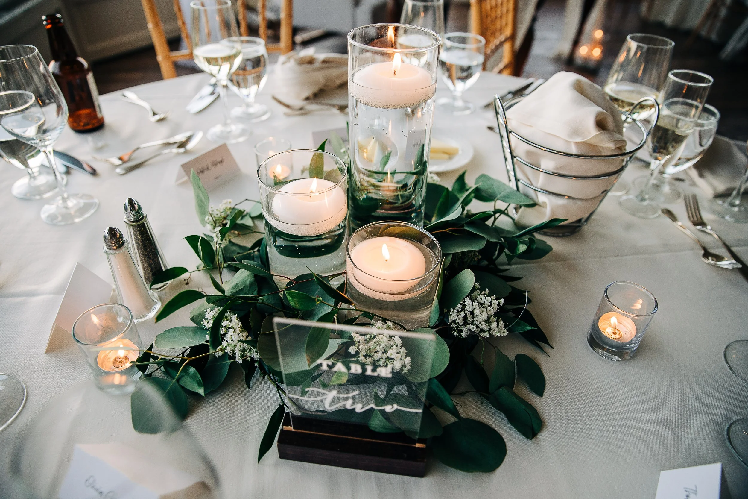 Tara and Dylan chose simple details that emphasized how special their love of nature and their venue was for them. The illustration inside their invitation envelope was a hand-drawn image of the ceremony space at The Garrison, and they chose other decorative elements that highlighted their love of nature, with white florals and leafy greenery.