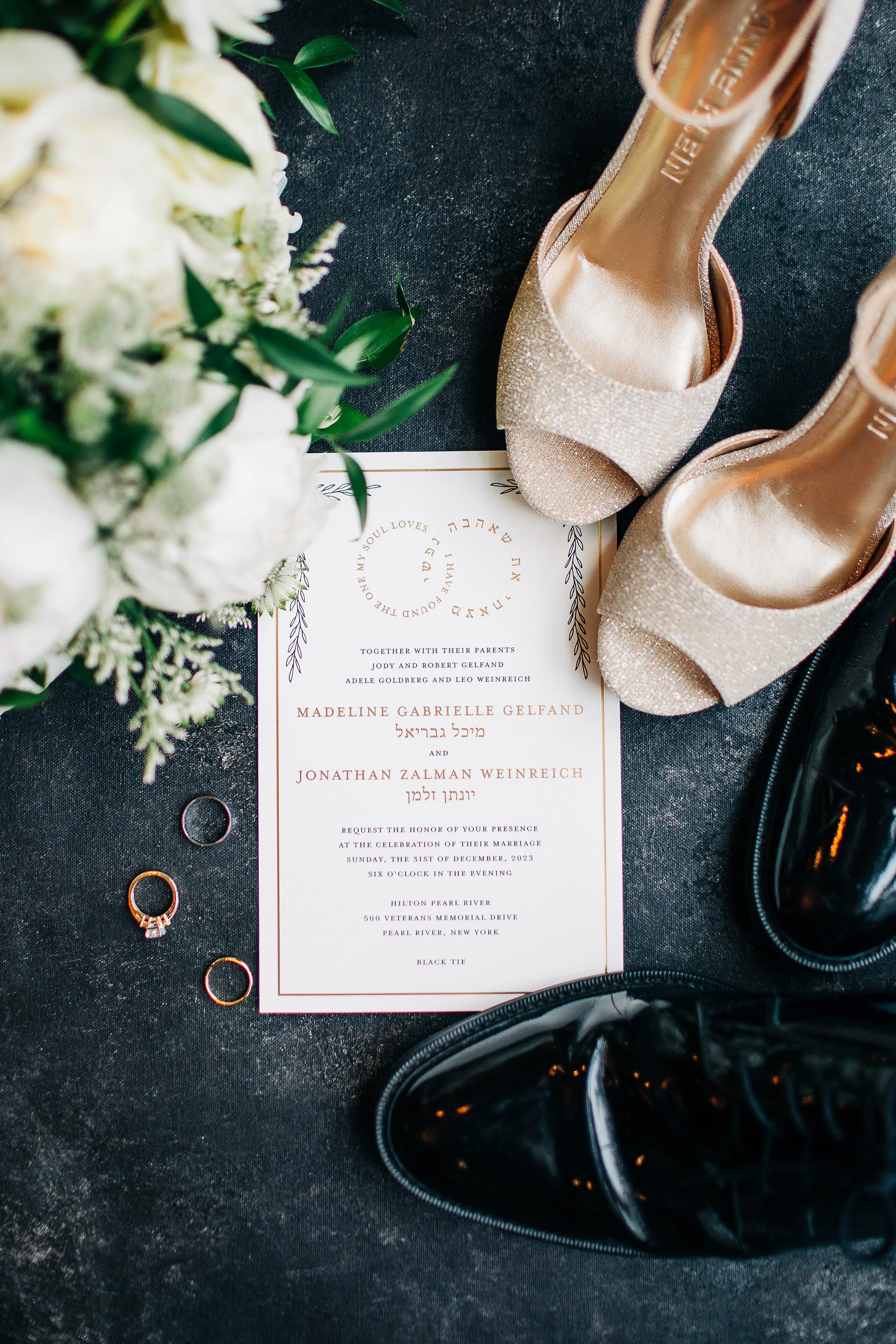 Some weddings don’t just celebrate two people coming together. They celebrate the world that surrounds them. Maddie and Jon’s New Year’s Eve wedding at the Hilton Pearl River in Pearl River, NY was exactly that kind of day. Every choice they made felt intentional, rooted in their traditions, and filled with joy. While many people choose New Year’s Eve as their wedding date for the new beginnings, party, and spectacle it traditionally holds, Maddie and Jon chose that date because it marked the anniversary of when they first started dating. Their wedding was a natural way of closing one year and starting another with the same love that began years earlier, while also being the best anniversary celebration.