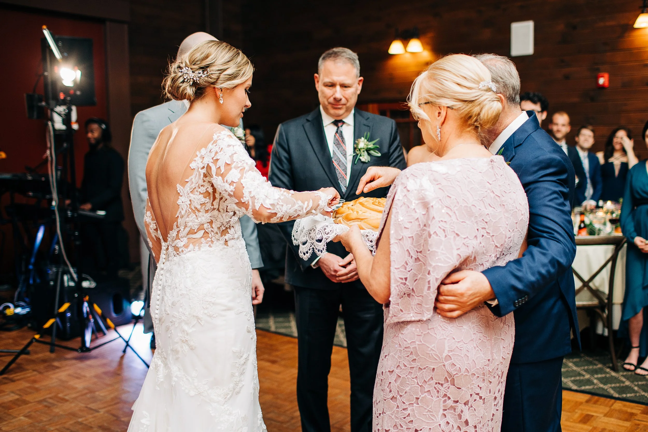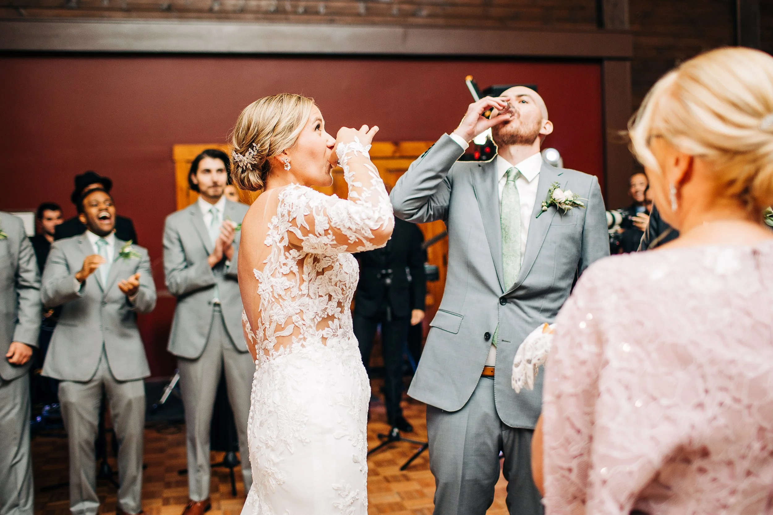 I loved loved loved Olivia and Jack’s reception. The dance floor was PACKED, and they kicked off the celebration with a Polish wedding tradition - their parents presenting special bread and salt to them alongside two shot glasses. The bread represented their parents’ desire for them never to know hunger. The salt represented the fact that sometimes life won’t be sweet, and to weather those times together as a couple. And the shot glasses were filled with clear liquid - one glass held vodka, and the other held water; according to tradition, whoever drank the vodka would have the upper hand in the relationship. Olivia got the vodka. 😉