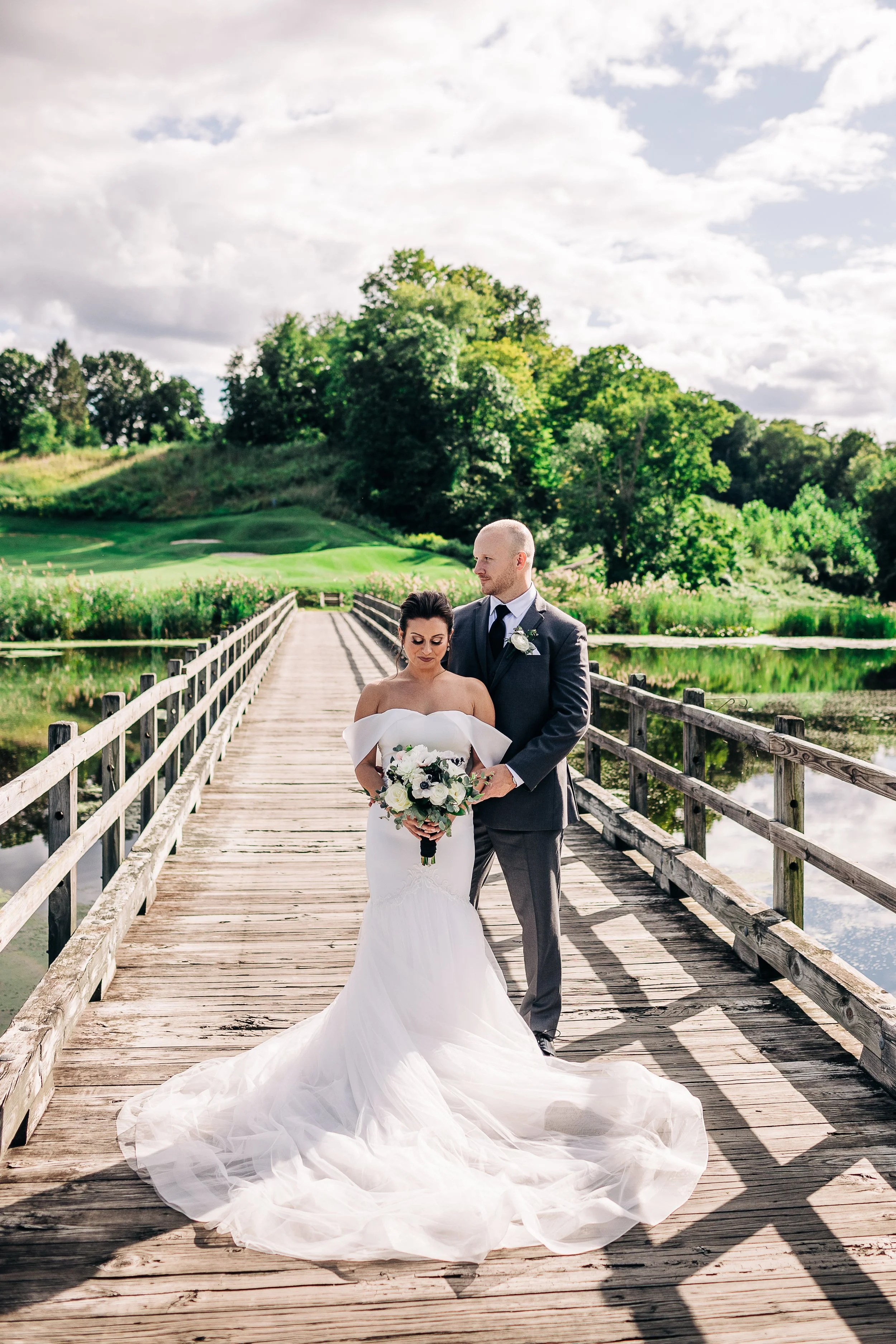 Jena wore one of my very favorite dresses ever. It was elegant, but also felt fun - just like her. The drop sleeves and long train were a dream to photograph in the greenery that Hollow Brook Golf Club offers for photos.