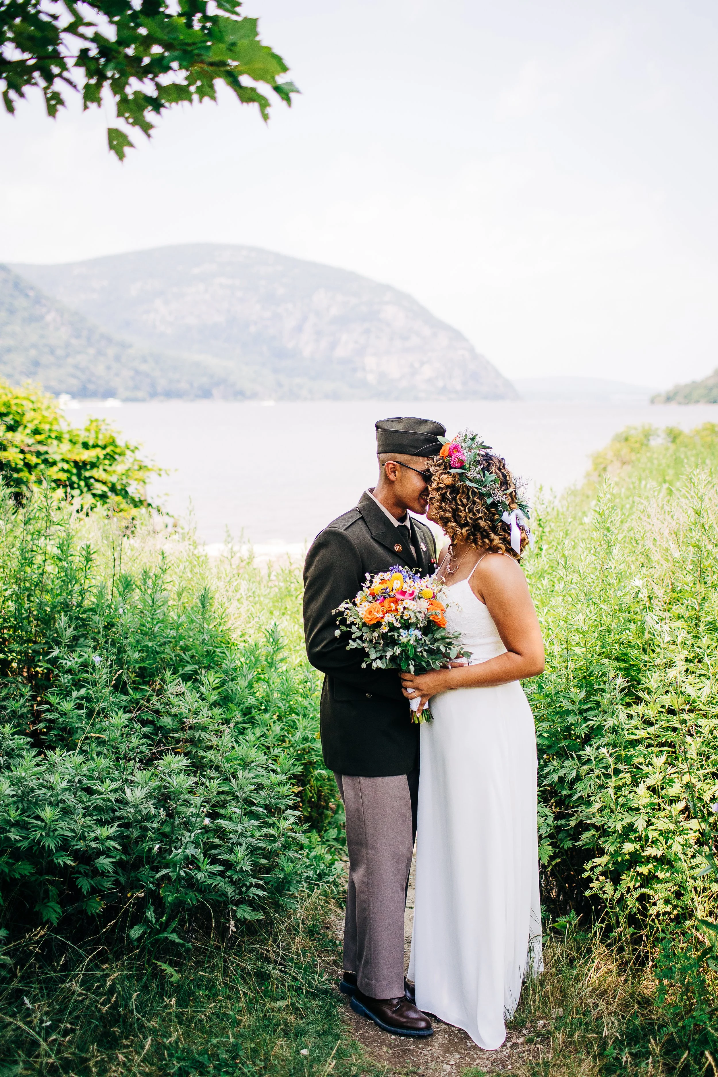 Smaller weddings usually have less focus on details…because what tends to be the biggest focus is the actual reason everyone has gathered together: the marriage itself. But, what Melanie and Elmer did put together for details were absolutely lovely. Melanie wore a simple white dress from David’s Bridal, and Elmer wore his military uniform. The florals they chose for both Melanie’s hair and her bouquet were colorful and summery - my favorite type of florals to photograph.