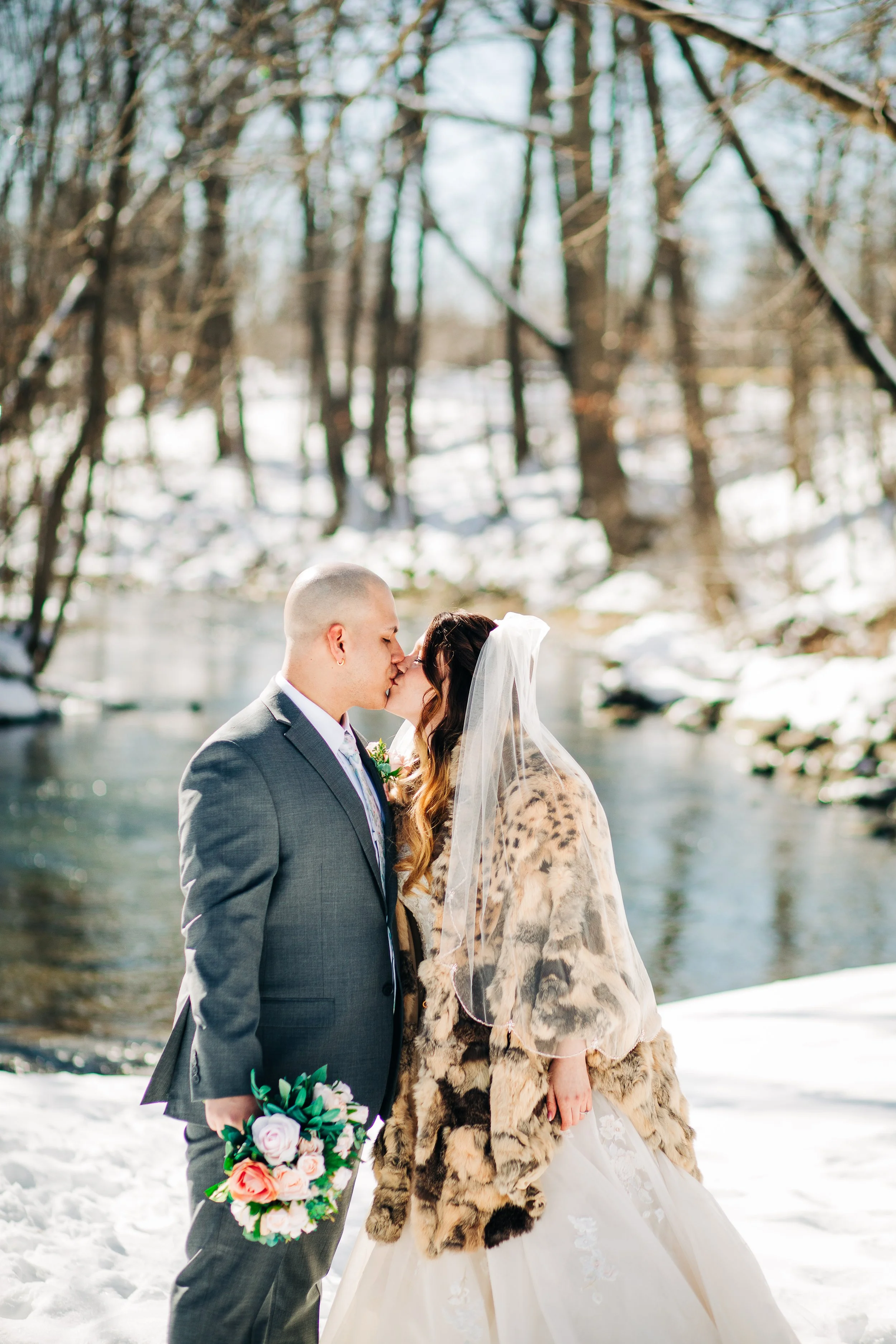Jon and Jade got married right before the pandemic gathering guidelines were becoming less strict, in February 2021. They hosted their wedding at Anthony’s Catering in Hopewell Junction, NY, right next door to a pizzeria - which provided the perfect backdrop for the only photo request Jade asked for: she and Jon eating a slice of pizza in wedding attire.