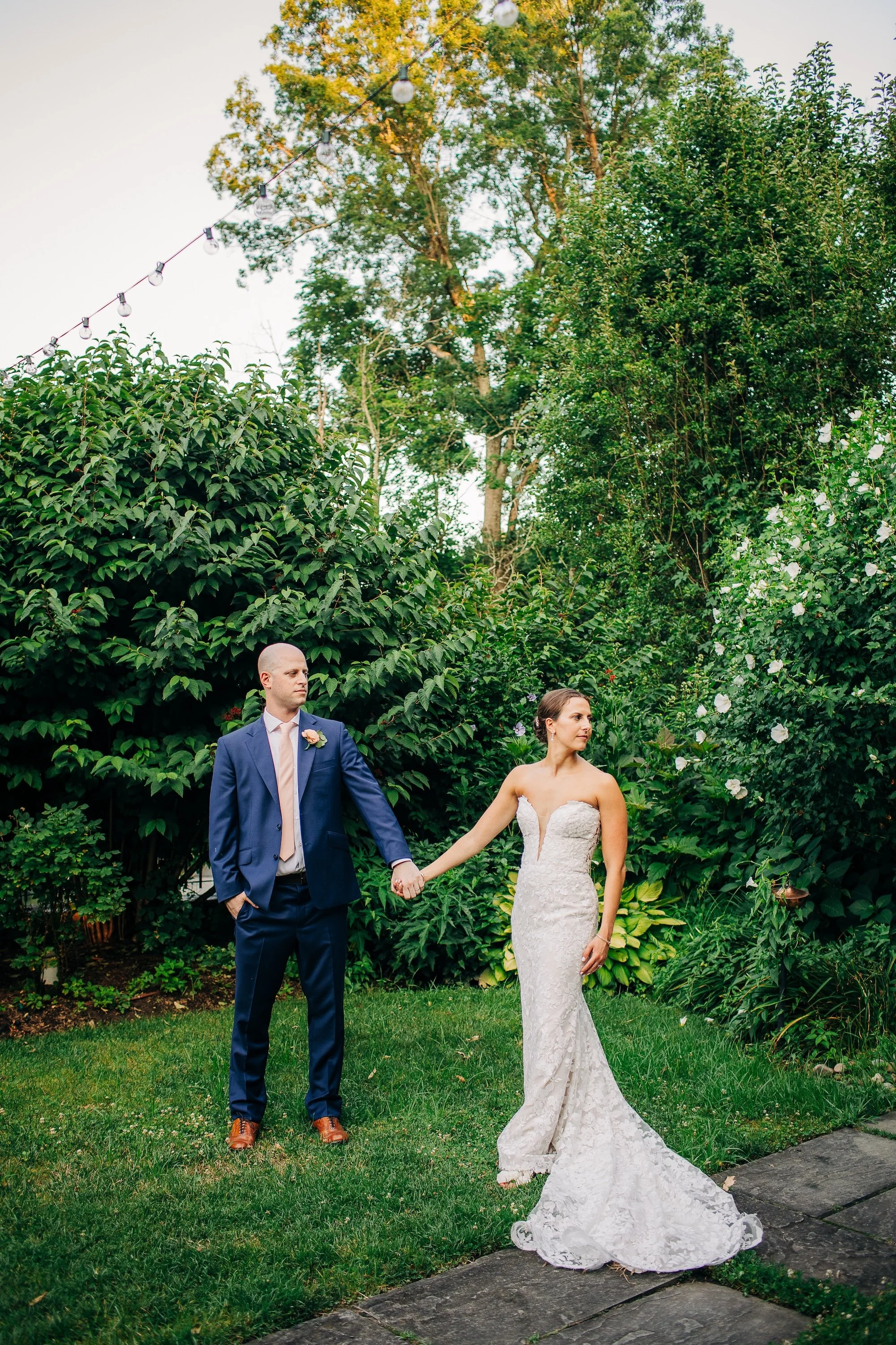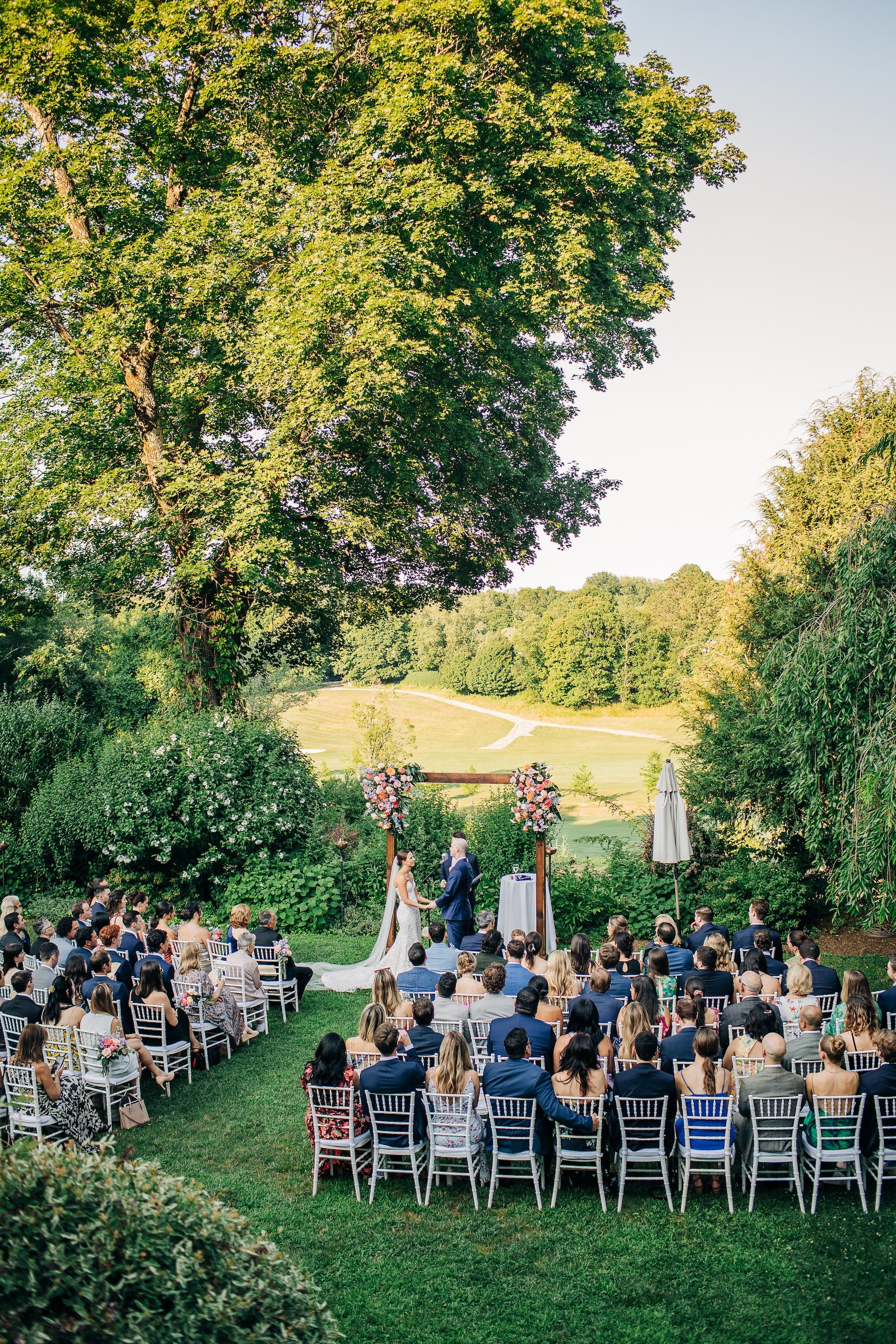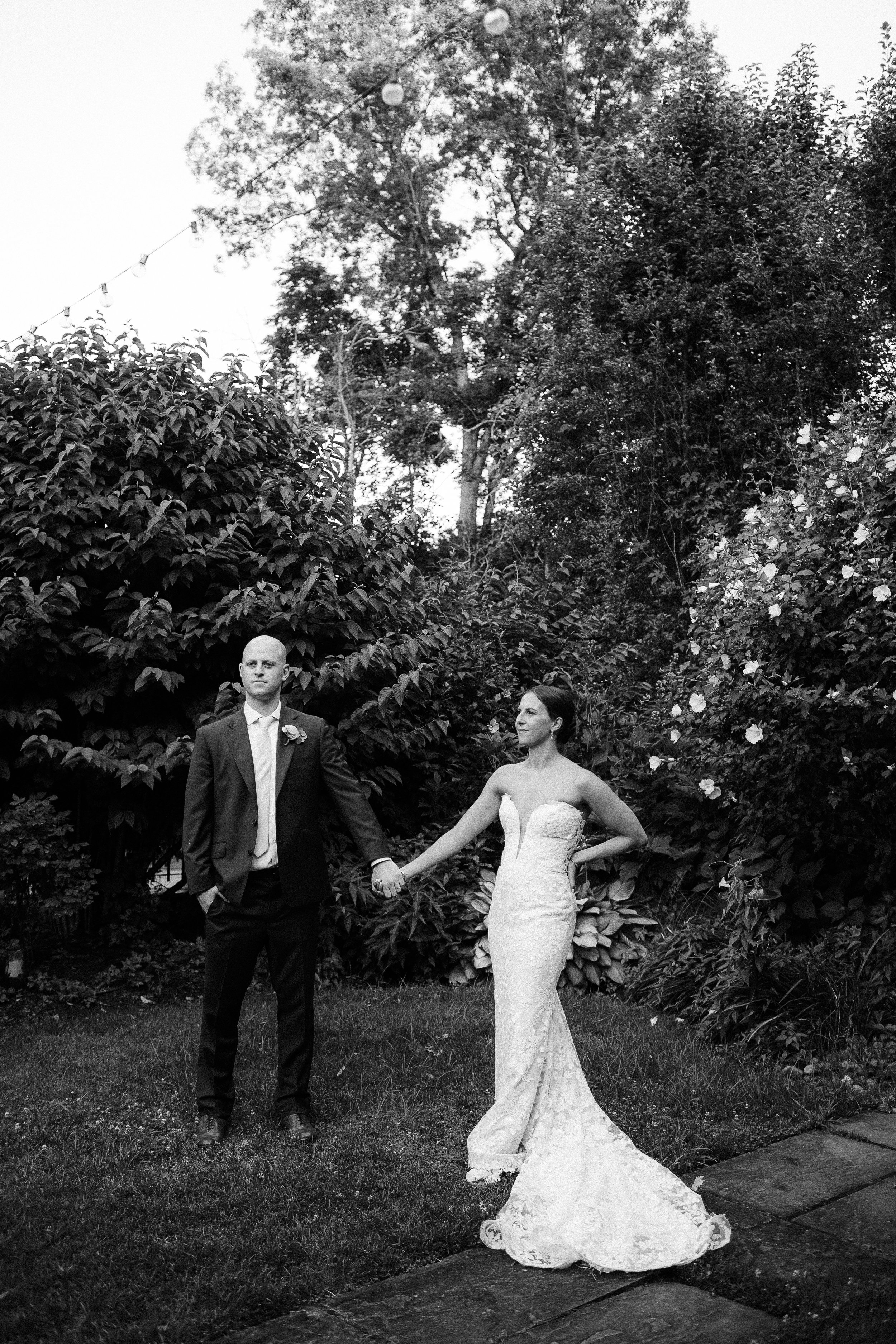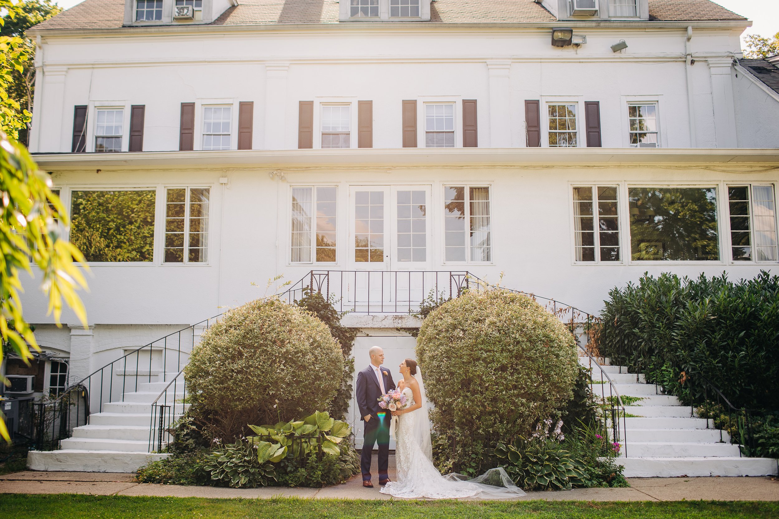The Kittle House Inn has been around since the 1700s and sits in the heart of Chappaqua, surrounded by mature trees and garden greenery that gave the whole day a lush, layered backdrop. The space is charming and intimate, and on a hot July afternoon, the greenery provided welcome shade for portraits. During golden hour photos, we also had the sweet joy of observing a cute deer observing us; it was such a darling detail to the day.