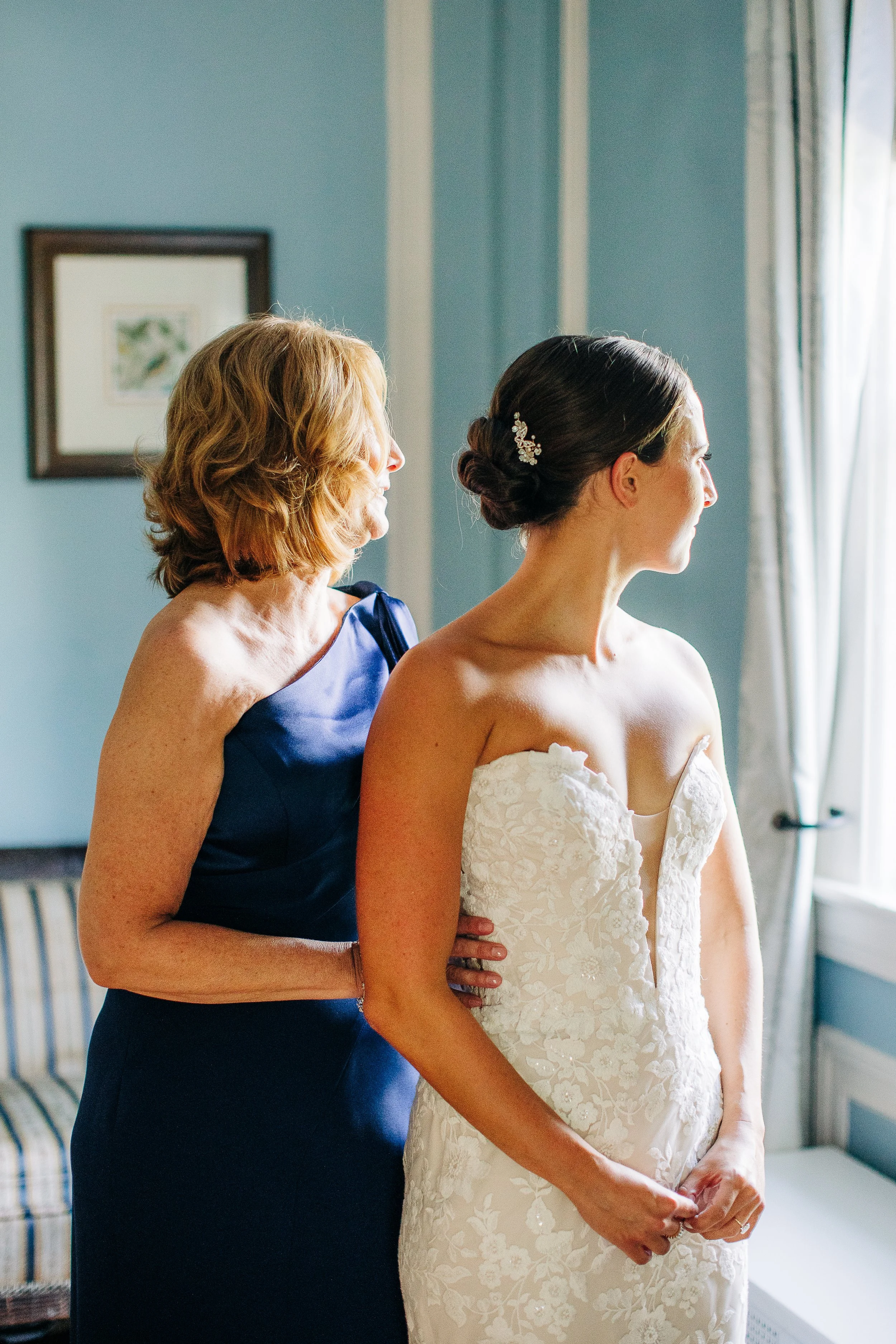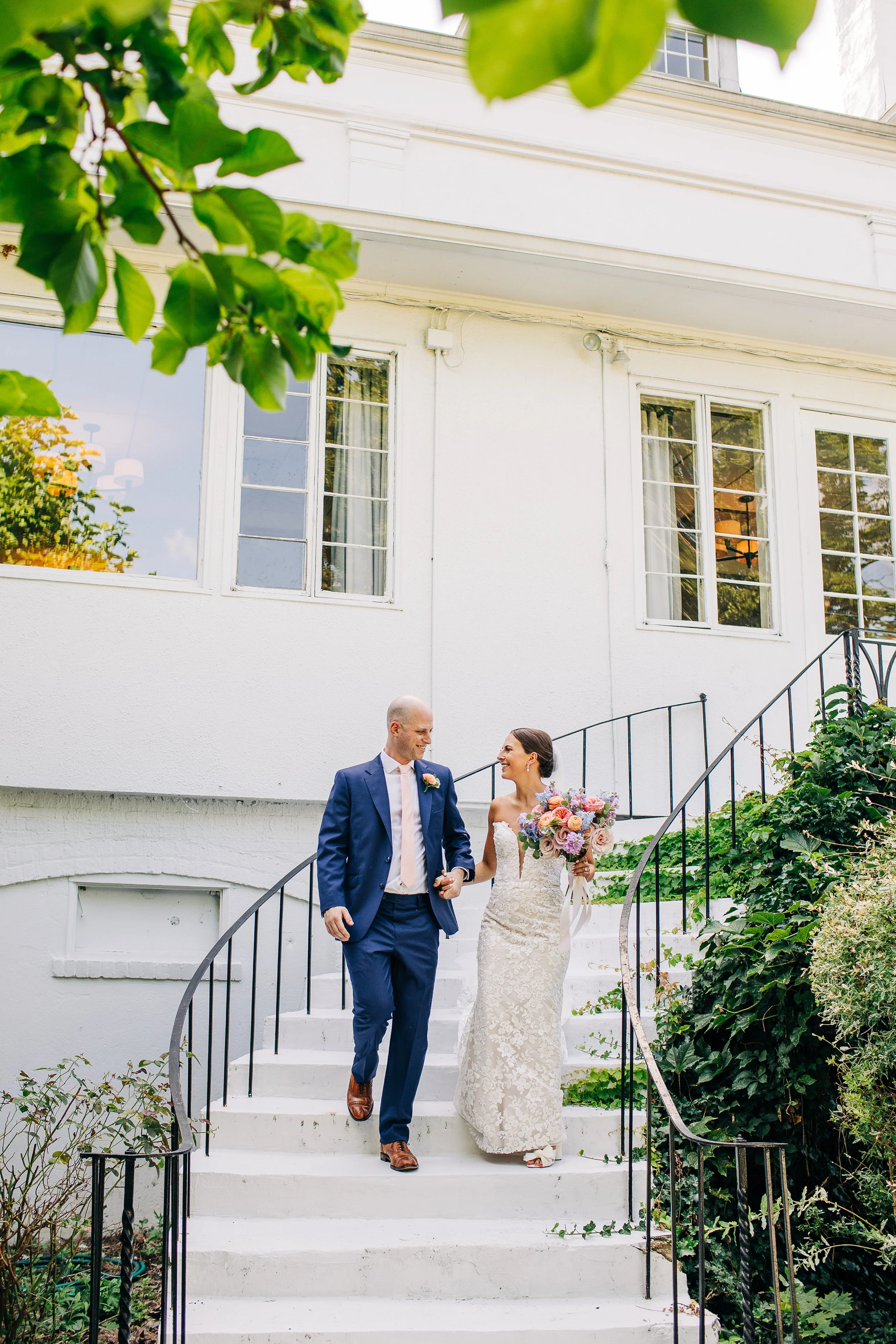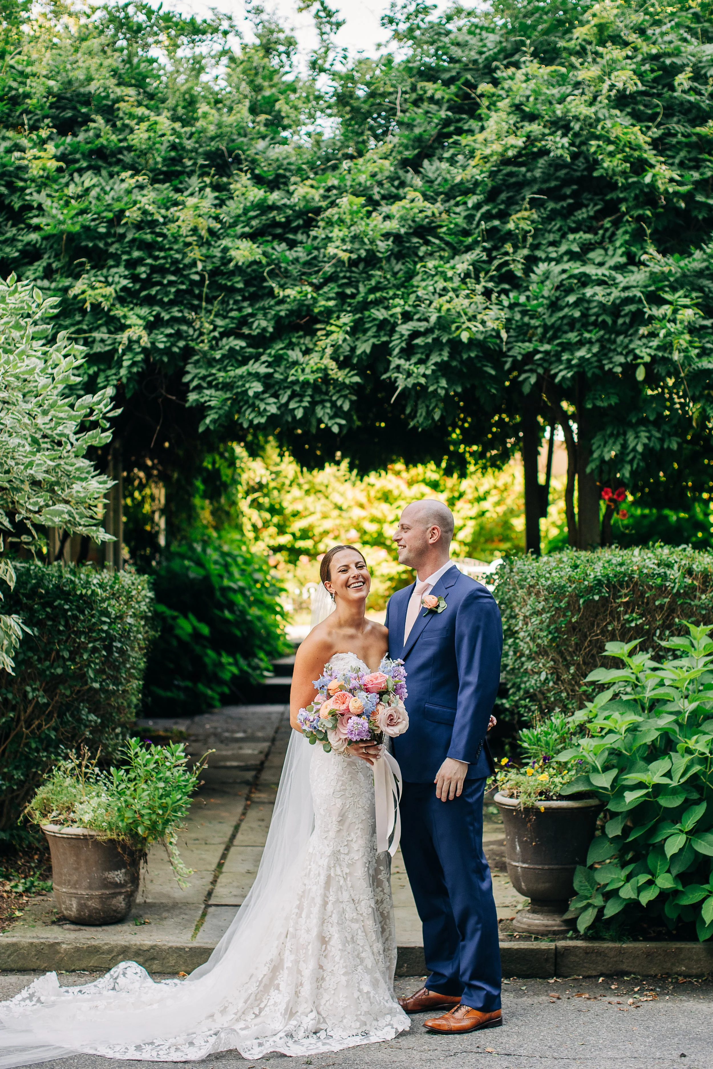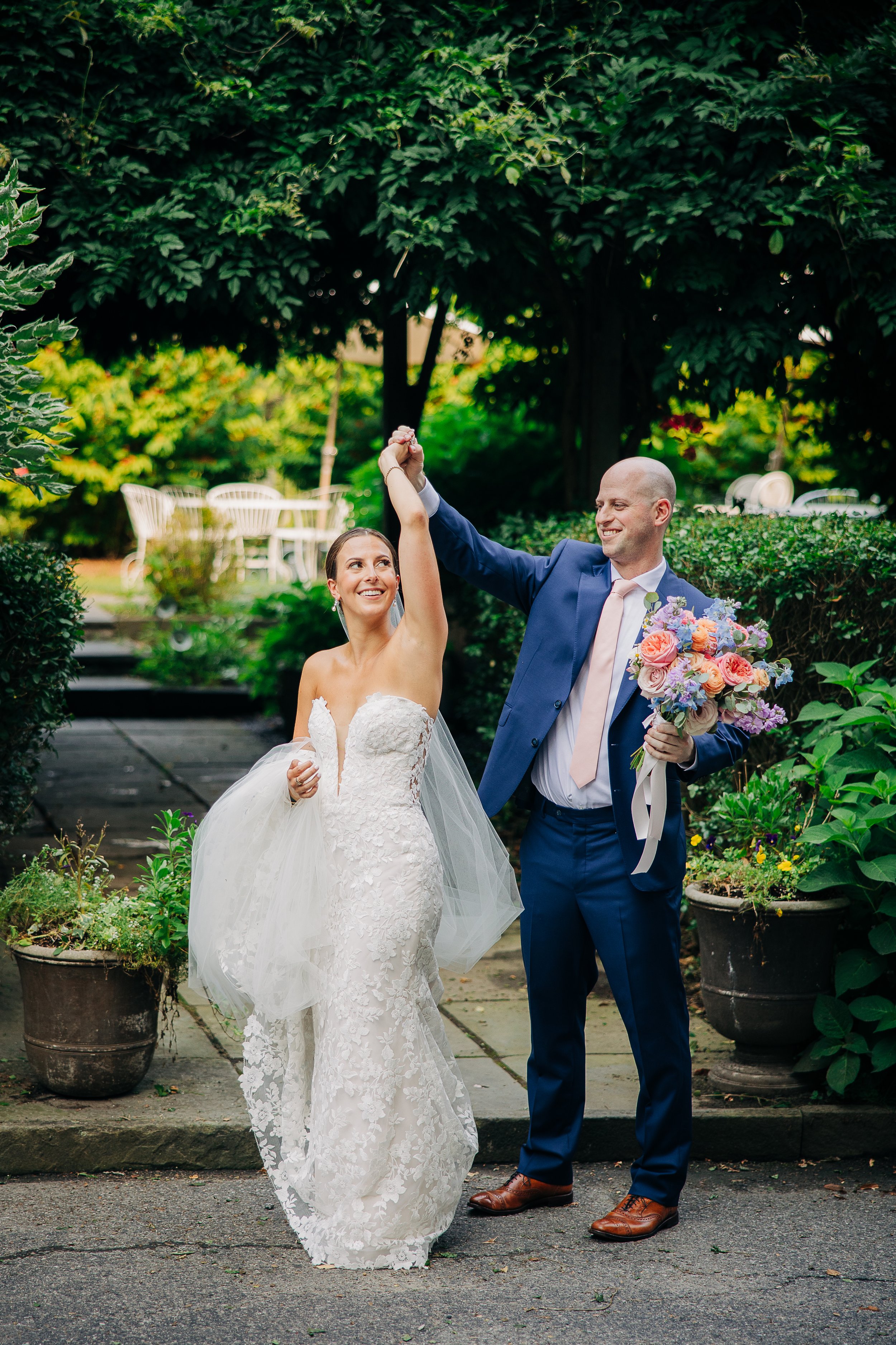 The Kittle House Inn has been around since the 1700s and sits in the heart of Chappaqua, surrounded by mature trees and garden greenery that gave the whole day a lush, layered backdrop. The space is charming and intimate, and on a hot July afternoon, the greenery provided welcome shade for portraits. During golden hour photos, we also had the sweet joy of observing a cute deer observing us; it was such a darling detail to the day.