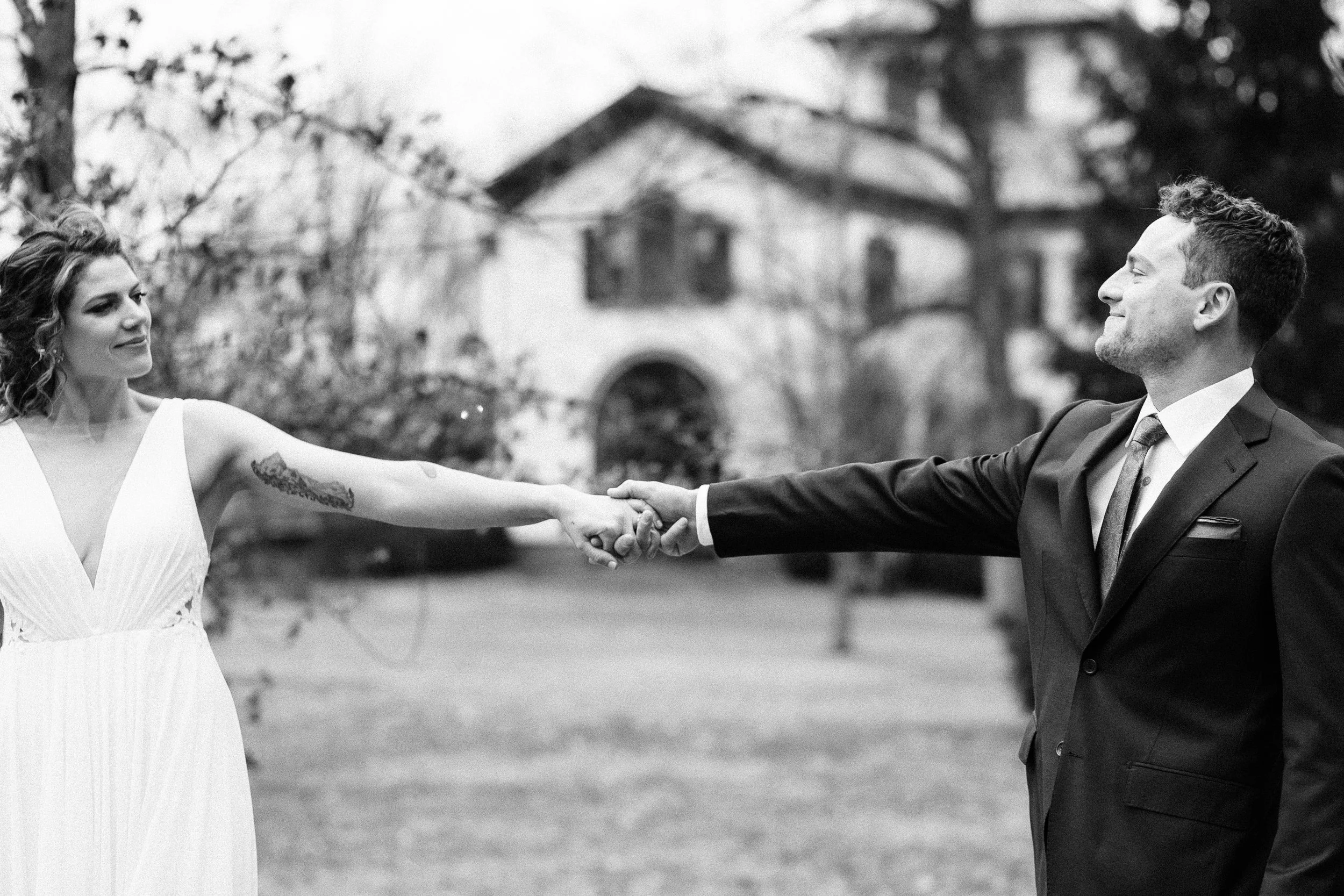 Before we knew it, the day had come and I was honestly so excited for her to arrive at our Airbnb. When she arrived I wanted to sit and chat over a cup of coffee, but she got straight to it, captured the entire day, helped us set up our first look, and was so easy to work with. We thought we were camera shy and would be uncomfortable doing our portraits. But when it came to it, Erica and her second photographer, made us look and feel good. They were so sweet, listened to our apprehensions and fears, and eased them all. They both coached us with a gentle hand into our photos and, boy, do we look freaking good!!