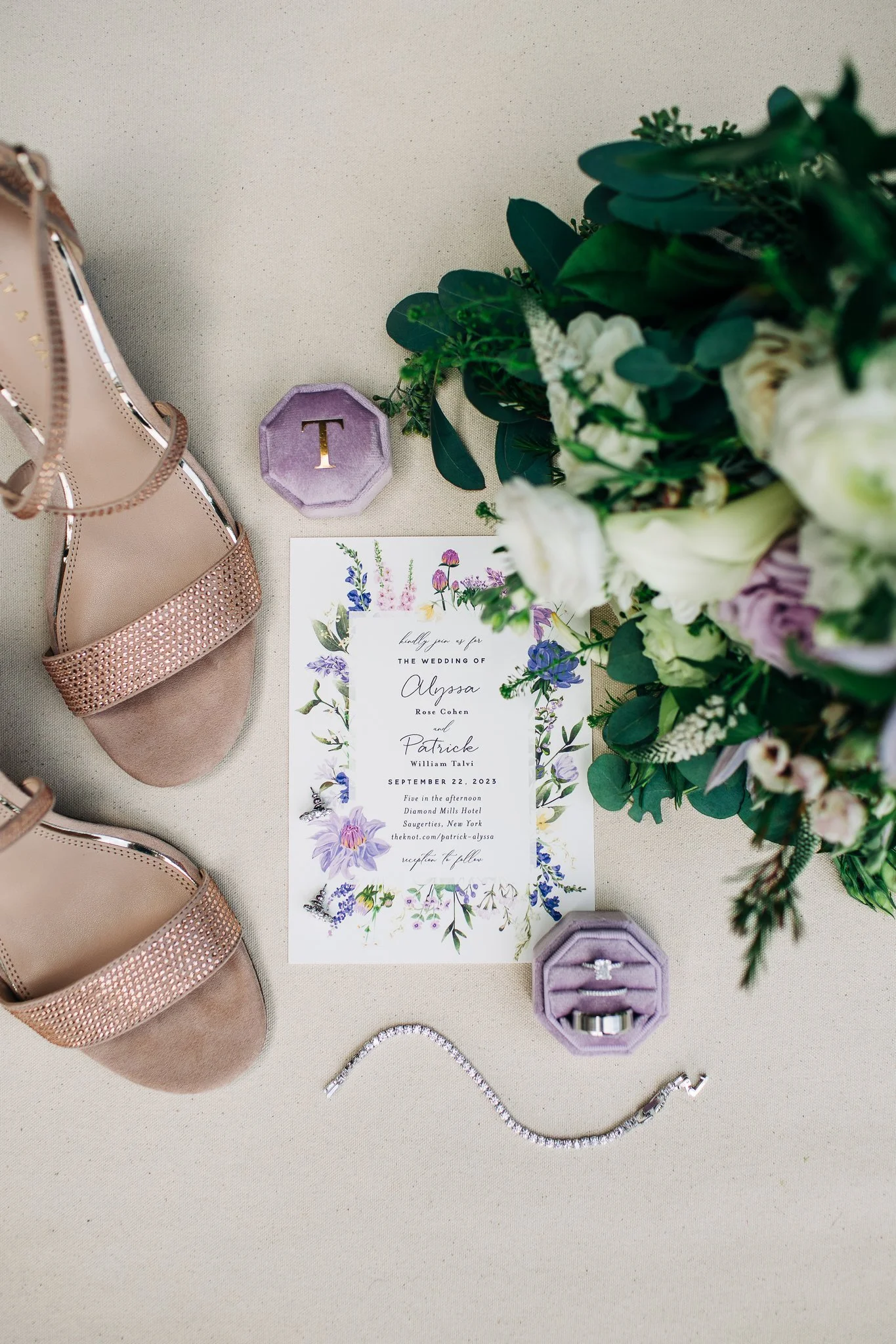 Alyssa and Patrick chose a color palette of purples and whites, with blush accents - elegant but unfussy. It showed up in the florals, the wedding party, and small touches throughout the day. Nothing felt overdone, but it all tied together beautifully.