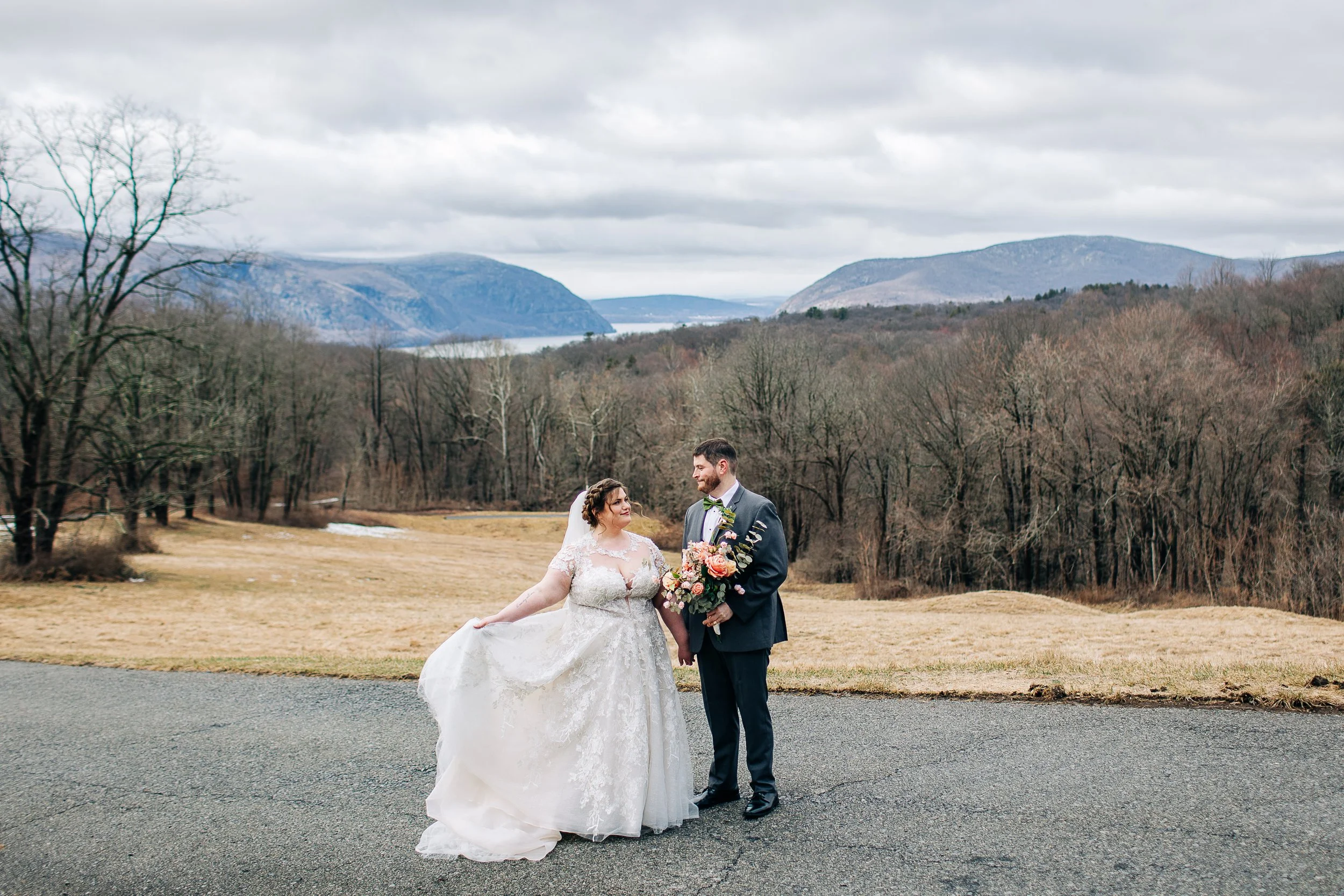The Garrison is a somewhat nontraditional wedding venue in the Hudson Valley of New York. While it has everything that a typical venue needs to host weddings, it is unique in its gorgeous mountain views, ample indoor natural light, and stunning mountain backdrop. It’s tucked away from the main road, so it is quiet and secluded. In winter, it especially feels ethereal and whimsical, with the mountains appearing blue from reflecting the cold sky.
