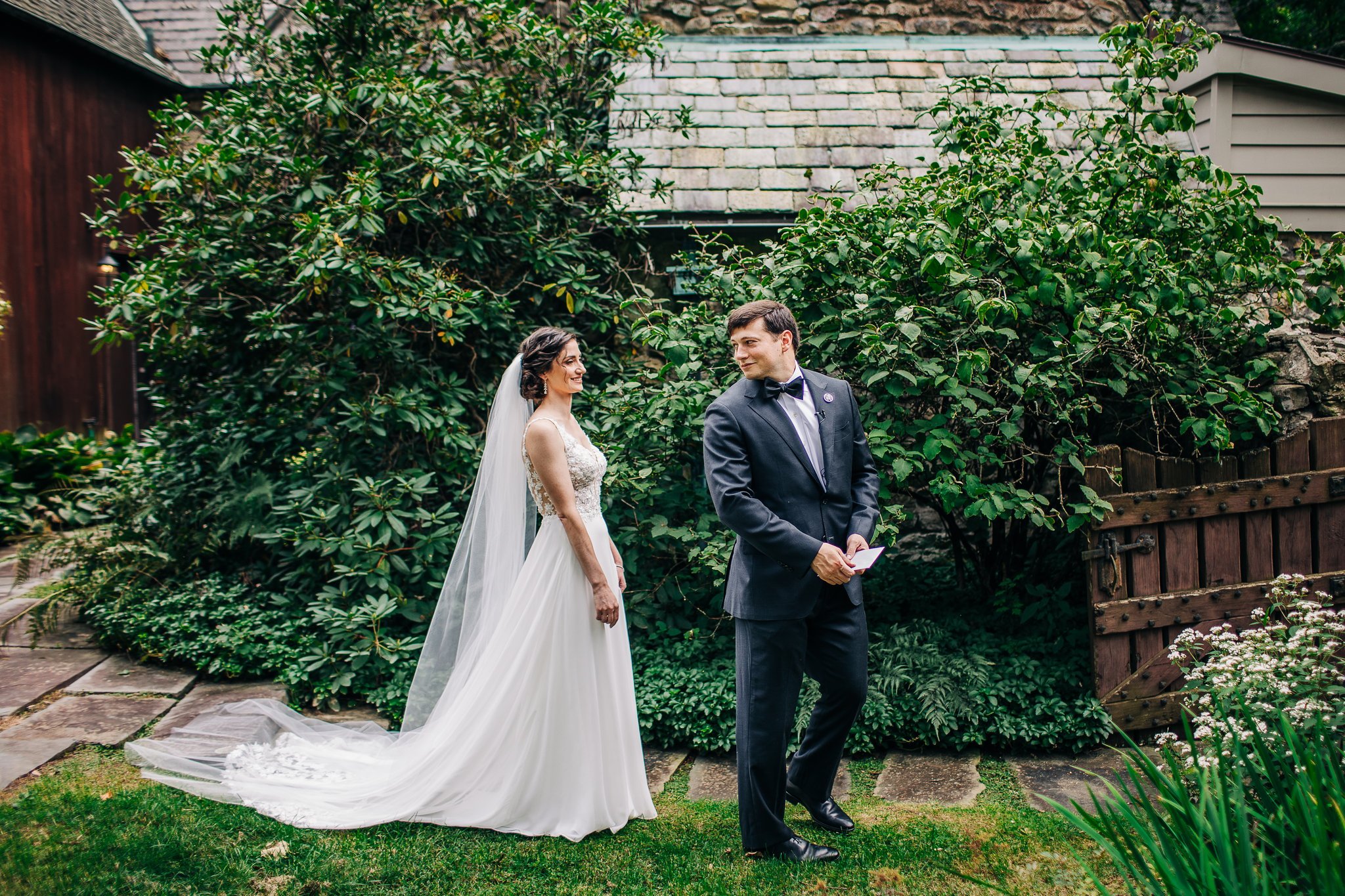 Before heading to The Grandview, the couple got ready at Greystone House - a hidden gem of a prep location right in Poughkeepsie, technically on the grounds of Locust Grove. The house has old-world charm, gorgeous natural light (in the sunroom especially!), and lush greenery on the grounds. They did their first look right outside the house, and let me tell you, and it was just perfect.