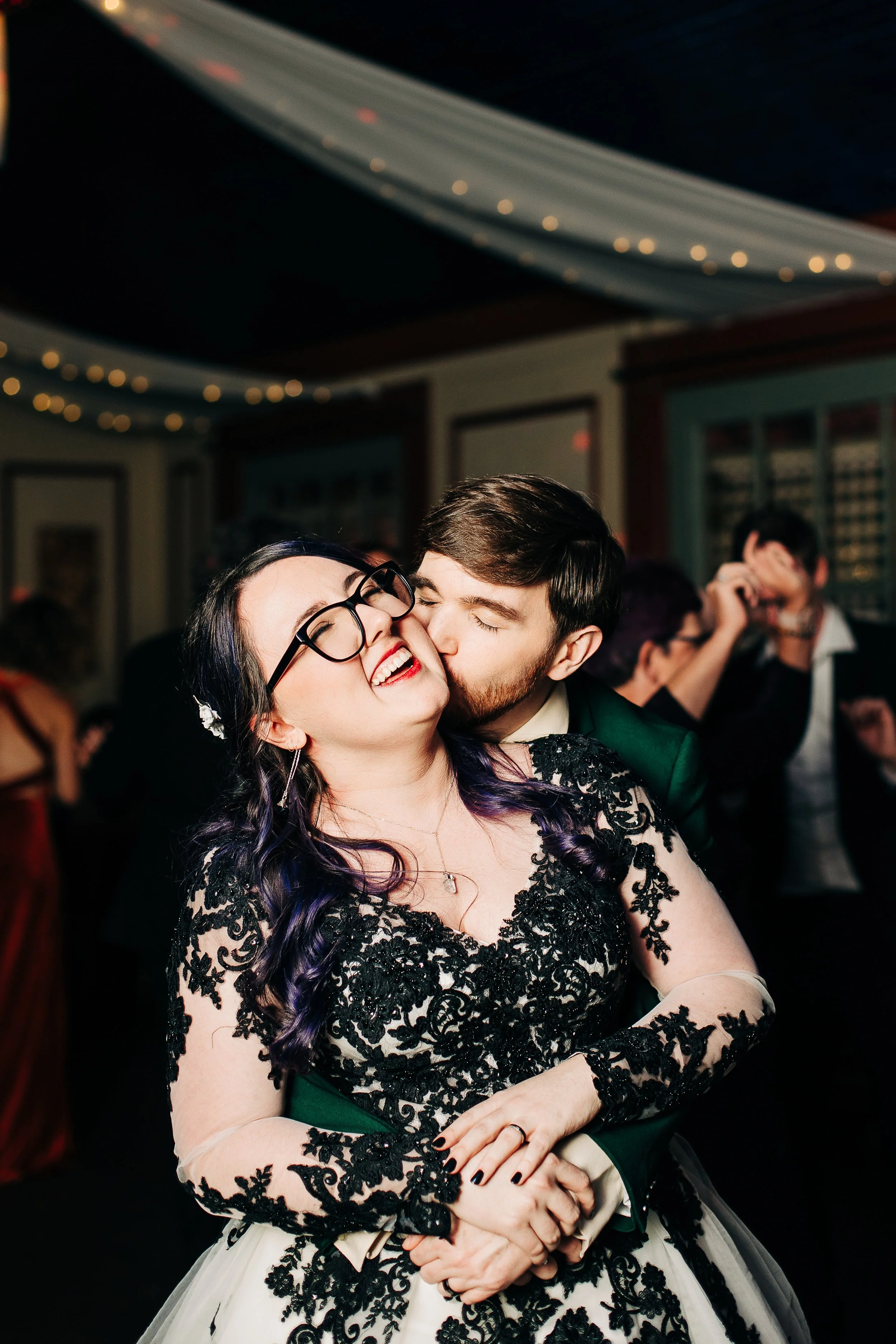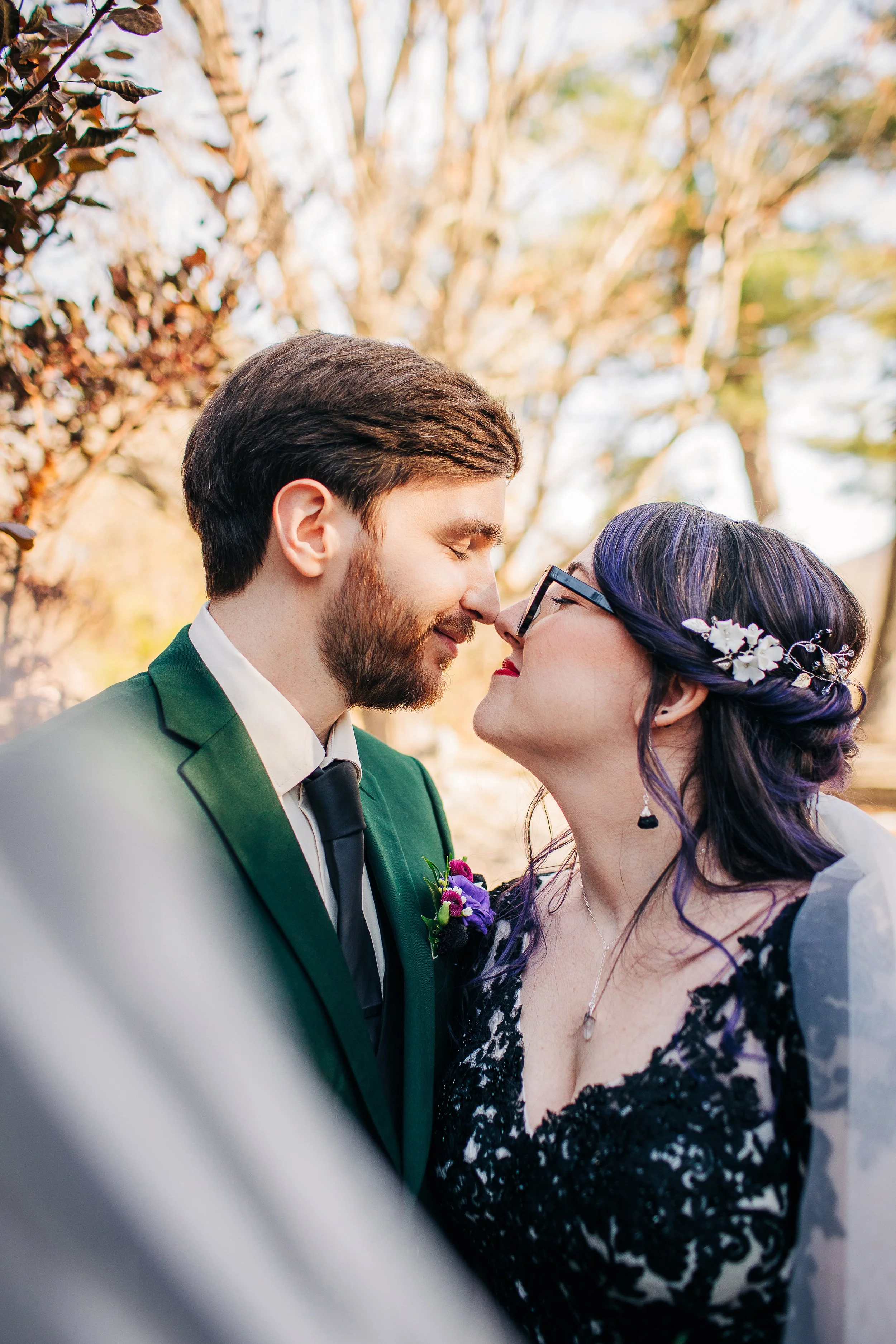 Sean is a thoughtful enneagram 2, Angela is a grounded enneagram 9, and they both work for a company that focuses on specialty board games. Sean was also in school, but somehow still managed to pour his heart into planning this wedding. He was so excited all day - tearing up more than once as we were taking photos. And Angela, with her purple hair and black lace-over-white gown, had this amazing presence that made everyone feel just as excited as she was.